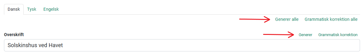 Du kan generere alle tekster ved at klikke på "Generer alle"