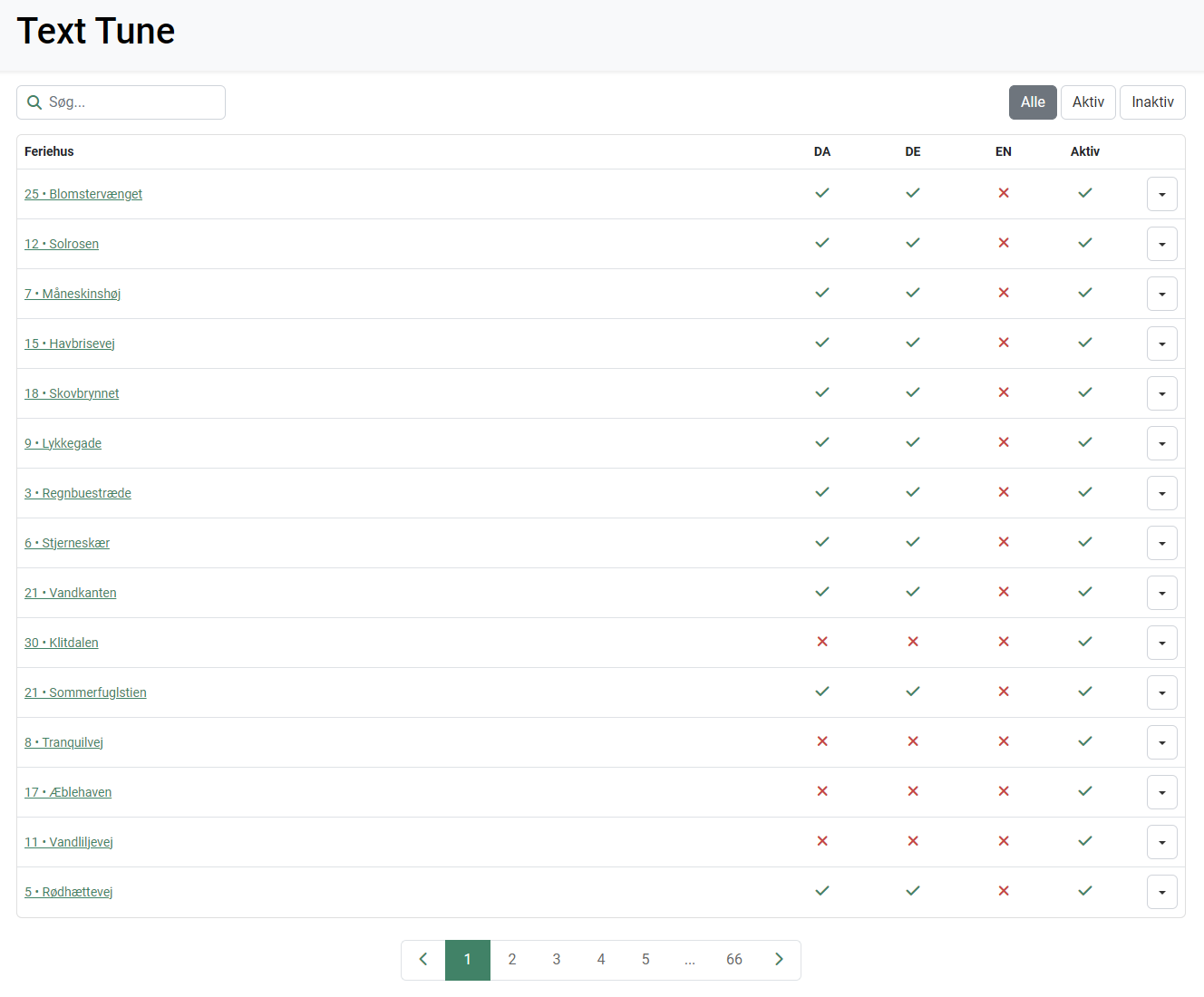at enten titel eller beskrivelse ikke er oversat. Den sidste kolonne repræsenterer husets status, aktiv eller inaktiv.